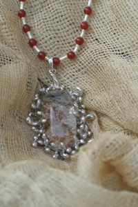 2013,5,13■銀座三越テーマ:マイズルソウ 5月13日(月)~21日(火) 営業時間/午前10時~午後8時まで(最終日は午後6時閉場) 銀座三越 8階 G・スペース お問合せ03-3535-1706(直通)担当:藤本 向かい合う葉の形が翼を広げて舞いを踊っている様にみえます。 マイズルソウはルビーの様なメノウの様な、宝石の様に輝く赤い実が出来ます。 新緑の季節に清々しいコレクションを提案します。 インペリアルジャスパー ペンダント |